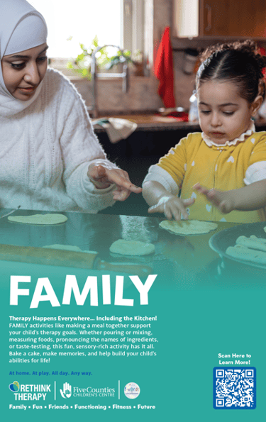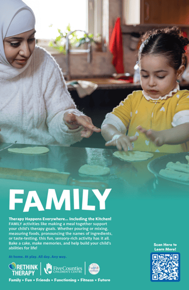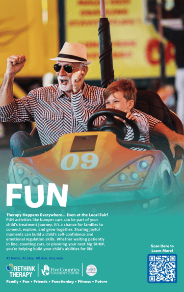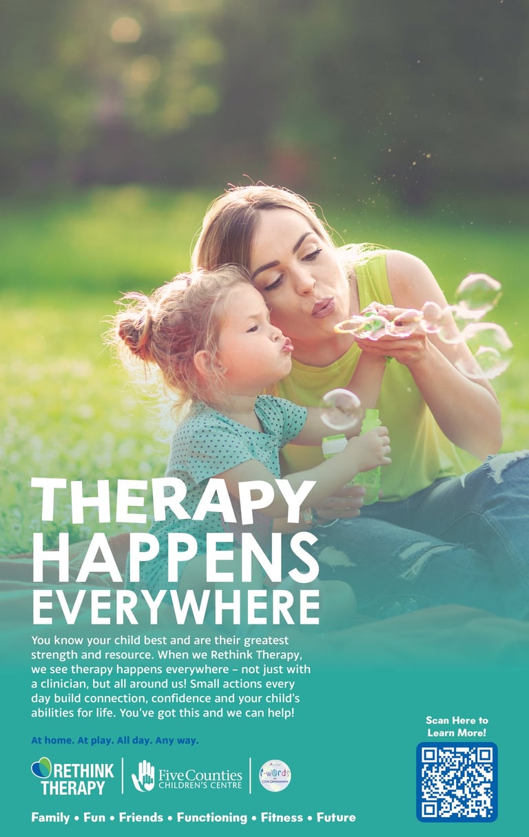 When we Rethink Therapy, we see therapy happens everywhere — not just at Five Counties Children’s Centre with a clinician/staff member, but all around us!